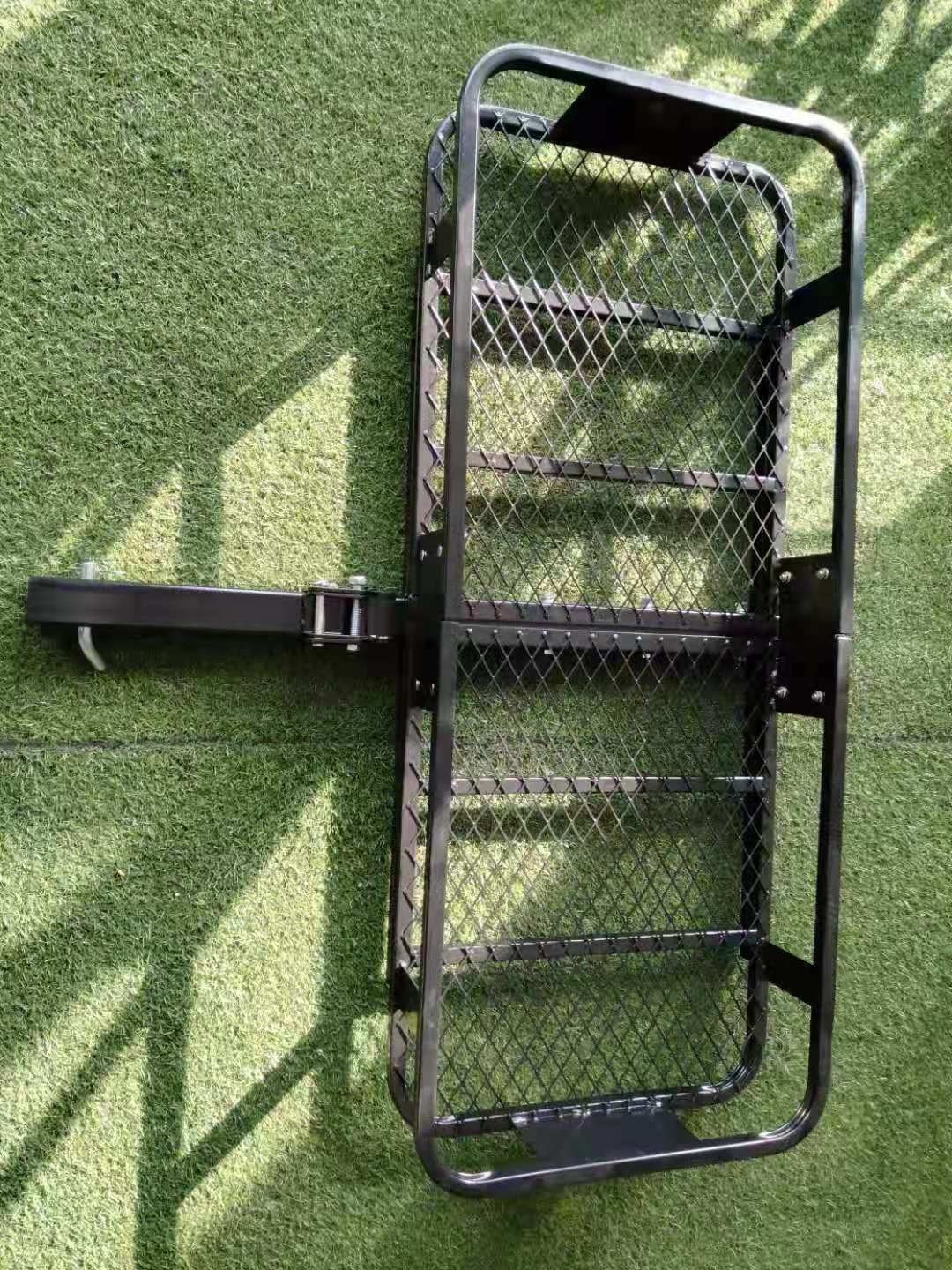 Bring more gear in a sturdy and attractive way with the Roadwin Hitch-Mounted Cargo Carrier Basket. Its durable heavy duty construction will hold gear for your camping trip, road trip, tailgate party and more. Simply attach to your vehicle's 2" receiver hitch and pile your things onto the mesh platform and you're ready to go!
